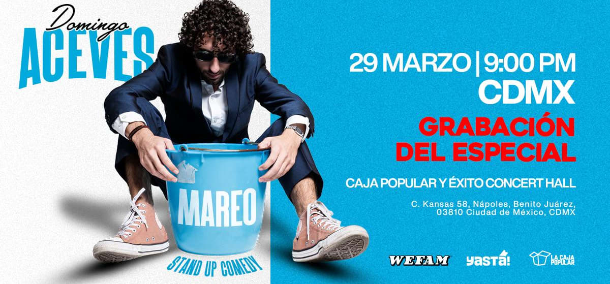 ¡El momento ha llegado! La grabación del especial de Stand Up de Domingo Aceves ocurrirá el próximo 29 de marzo en el escenario de Éxito Concert Hall y La Caja Popular. No te quedes con las ganas de ser parte de este momento único .